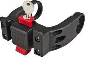 Stuuradapter E met slot zwart-rood in combinatie met e-bike display Ø 22-26 mm, Ø 31,8 mm. Bredere versie van de klassieke stuuradapter die gemonteerd kan worden zonder dat e-bike displays in de weg zitten. De adapter is 22 mm langer dan de stuuradapter. Wilt u uw mand of shopper veilig op uw fiets laten zitten, dan is de stuuradapter met slot de juiste keuze. De rode knop integreert een hoogwaardig metalen slot. Tussenruimte 78 mm, breedte 110 mm. Met twee paar klemmen voor sturen Ø 22-26 mm + oversized klemmen voor Ø 31,8 mm. Zelfs bij zware belasting zakt de adapter niet naar beneden dankzij de gepatenteerde veiligheidskabel.