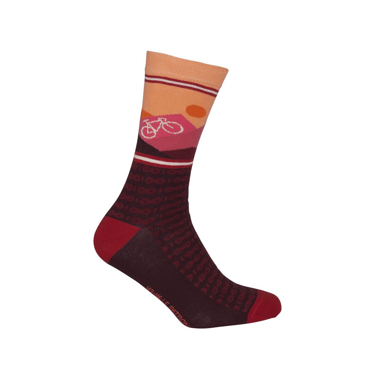 De Le Patron Mountain sokken symboliseren de haat-liefdeverhouding die renners hebben met de berg. Brandende zon, stevige wind, 10% stijging. En dan….de top. Pure euforie. De Mountain sokken zijn verkrijgbaar in de kleuren Dark Blue, Army Green en Bordeaux. Het design toont het samenspel tussen natuur, mankracht en technologie; een topcadeau voor iedereen die houdt van een stevige uitdaging.