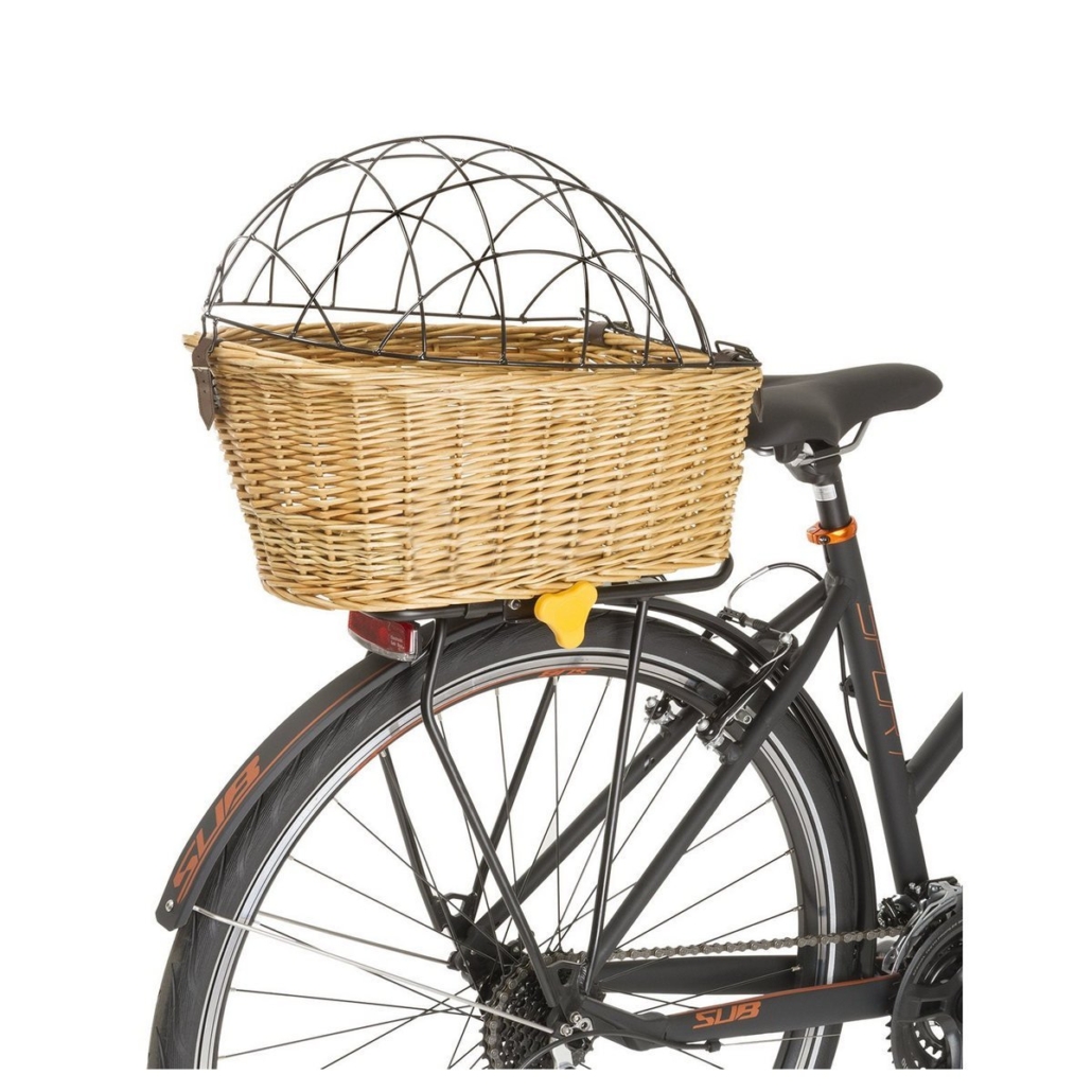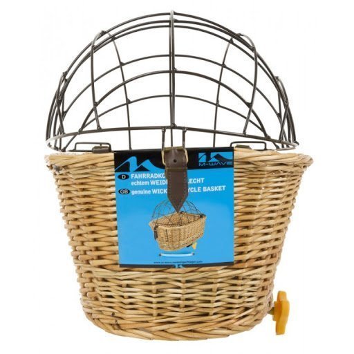 Gemaakt van echt gevlochten wilgen, handgemaakt. Met “deksel” van staaldraad Bevestiging zonder gereedschap aan de bagagedrager.